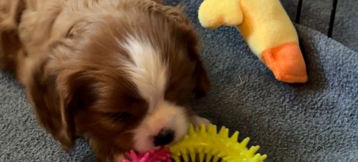 For the longest, we have only bred the parti colors, (blenheim and tri). I have recently dived into the solids and chocolates. It will be a while before any are produced but we look forward to it some day.