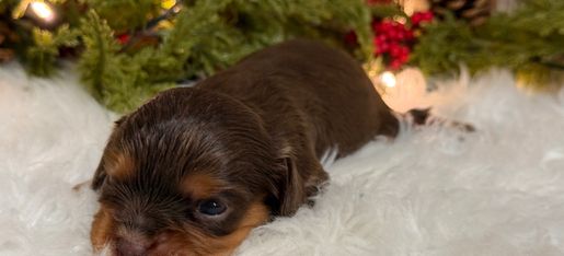 I have 3 chocolate and tan female puppies available. Born 11/22/2025.
